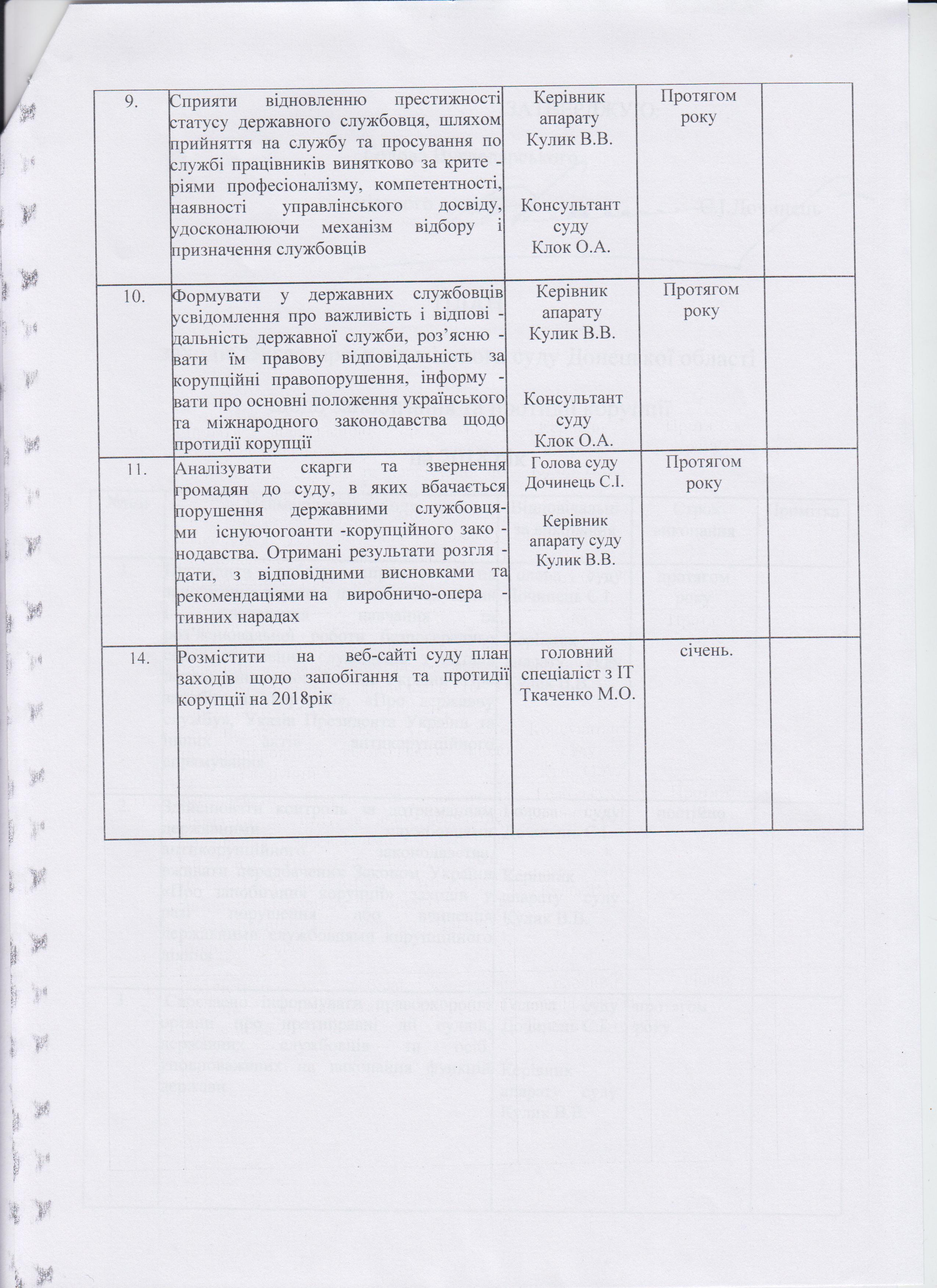 План заходів