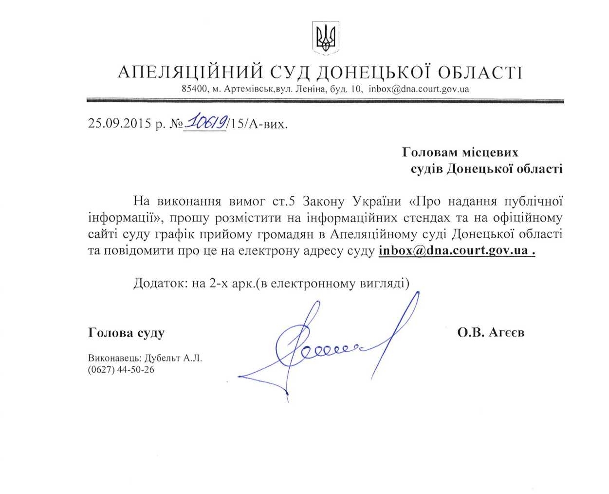 Наказ "Про порядок здійснення доступу до публічної інформації Вугледарського міського суду Донецької області"