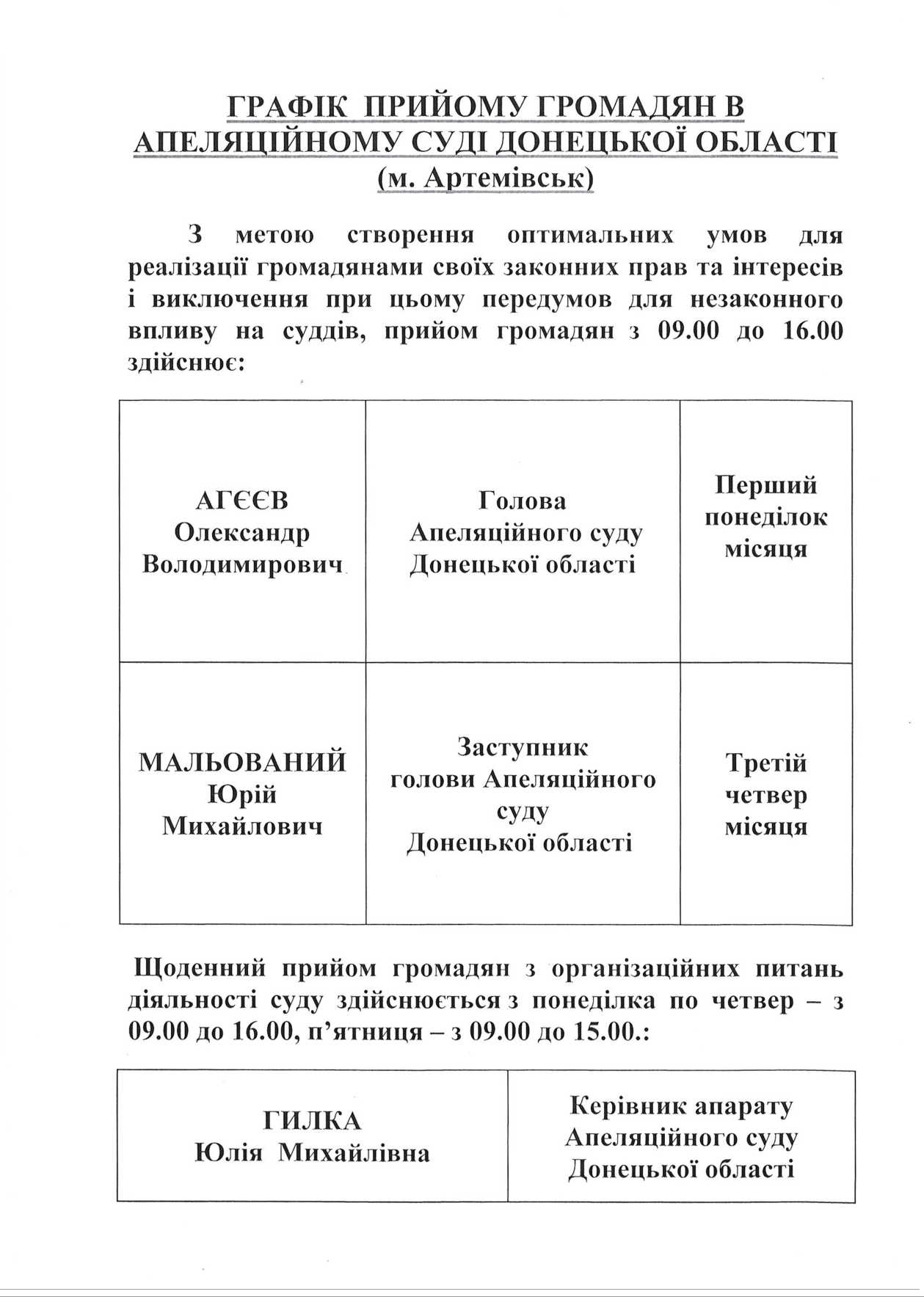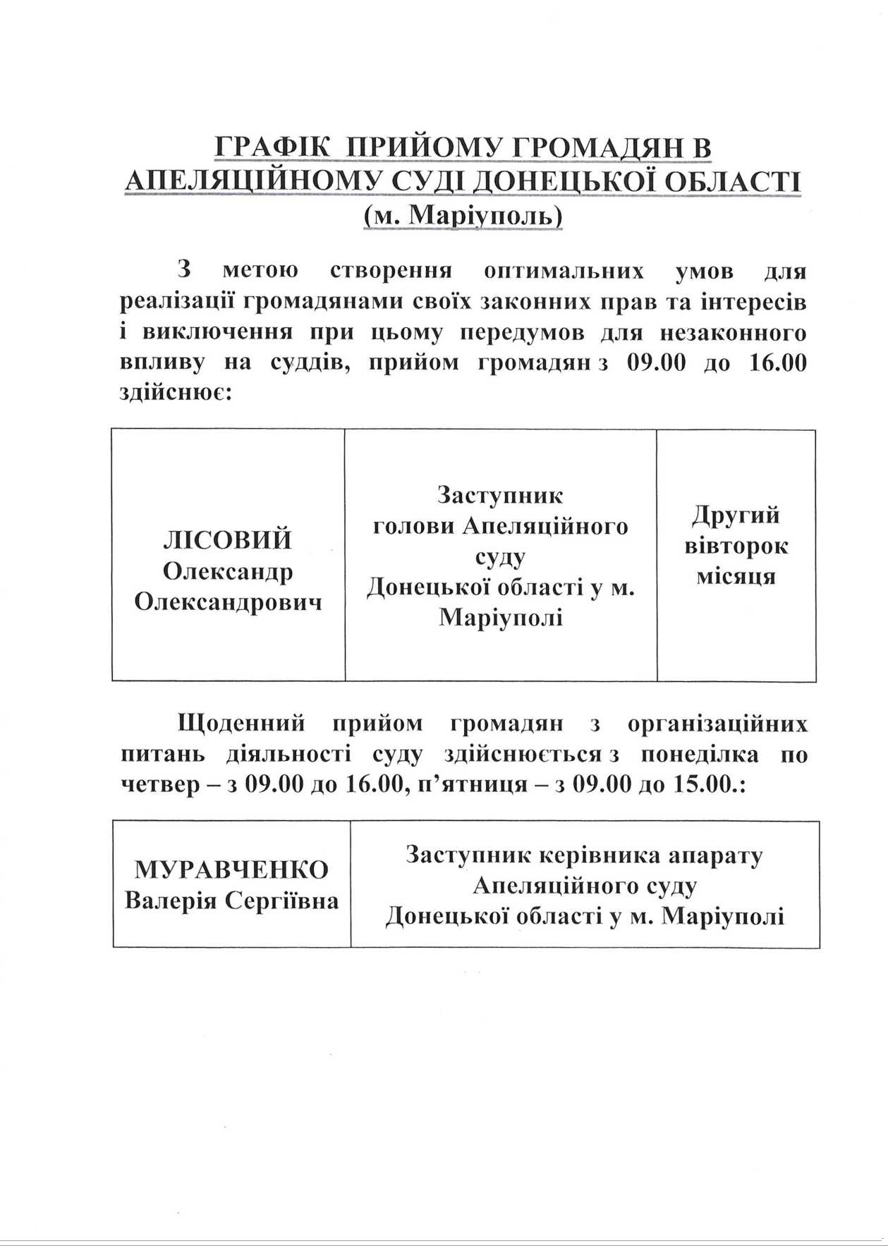 Телефони співробітників суду